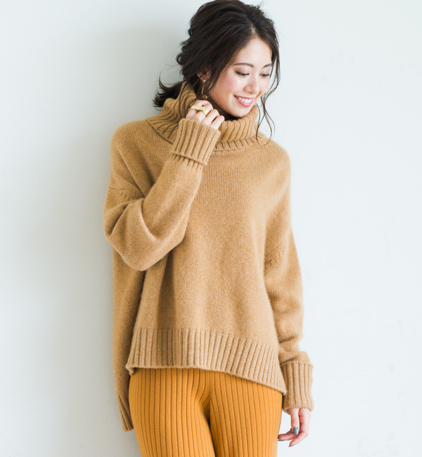 カシミヤ100ボリュームタートルニット