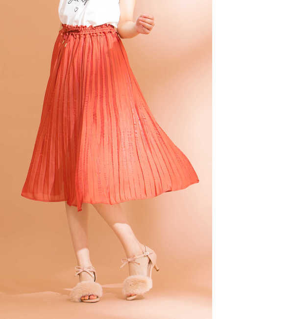 ふわっと風をまとうようなエアリーな風合いのプリーツスカート!光沢感のある上品なプリーツが、レディな着こなしのアクセントに。ウエストギャザー仕様で穿きやすく、ミモレ丈のフレアシルエットが大人っぽい印象です。Tシャツなどの、カジュアルアイテムと合わせた着こなしがオススメです。秋口も使えるカラーリングも魅力です。 ※商品の撮影はサンプルで行っている為、カラーやサイズ等に変更がある場合がございます。予めご了承ください。 ※人物着用の画像は、光の当たり具合や撮影環境により、色味が違って見える場合がございます。正しい色味は物画像または、トルソー画像の色味をご参照ください。 ジル バイ ジルスチュアート/JILL by JILLSTUART スカート|スカート