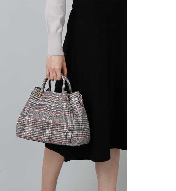 大人気のショルダーバックが雰囲気はそのままにミニサイズになって登場!小ぶりサイズながら、たっぷりのマチでお出かけに必要な荷物は充分収納できます。ちらりと覗くメタルハンドルがスタイリッシュなデザインポイント。ハンドルを通す部分にはタックをとって立体的でエレガントなフォルムに仕上げました。今年らしいチェック柄にも注目!ショルダー調節・取り外し可 ナチュラルビューティーベーシック/NATURAL BEAUTY BASIC バッグ|ショルダー・メッセンジャー