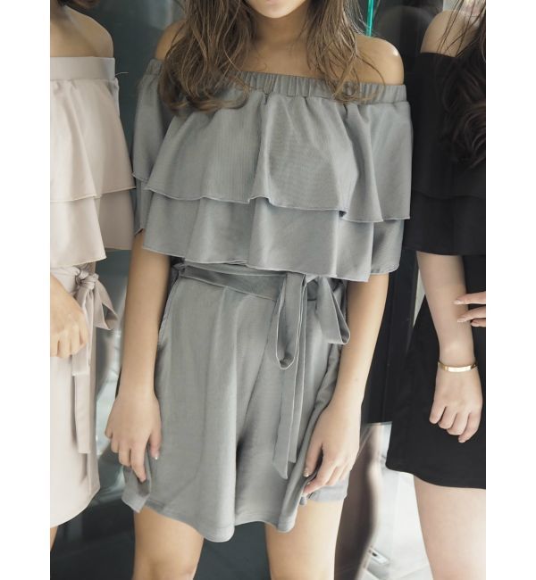 カットソーのショートコンビネゾンです。オフショルダーなので首元にネックレスなどアクセントをつけるのも◎腰元から切り替えのリボンも特徴的で可愛いです♪この一枚を持っていればどのシーンにも役立つと思います◎ミックスはストライプです。 リゼクシー/RESEXXY ワンピース|ワンピース