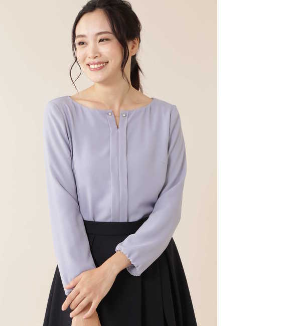 キーネックの部分にオリジナルのパールのパーツが付いたエレガントなブラウスは、 ノーアクセサリーでスタイリングが完成します。 素材は三菱レイヨンの異収縮混繊糸(熱収縮性の異なるものを混ぜ合わせて1本の糸にしたもの。織物にしてから熱をかけ、熱収縮の大きな方 の繊維を収縮させて織物にふくらみをもたせることができる糸です。 ナチュラルビューティー/NATURAL BEAUTY トップス|シャツ・ブラウス